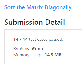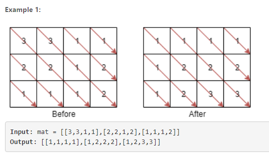 2차원으로 주어지는 배열에서 diagonal line을 크기 순으로 정렬한 새로운 2차원 배열을 반환하는 문제이다.