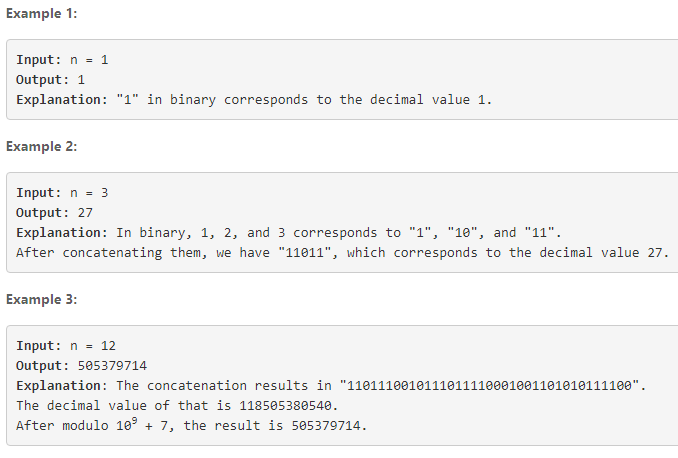 예시에서 처럼 주어지는 n에 대해서 1~n 까지 2진수로 표현하여 나열한 2진수를 10진수로 변환하는 문제이다.