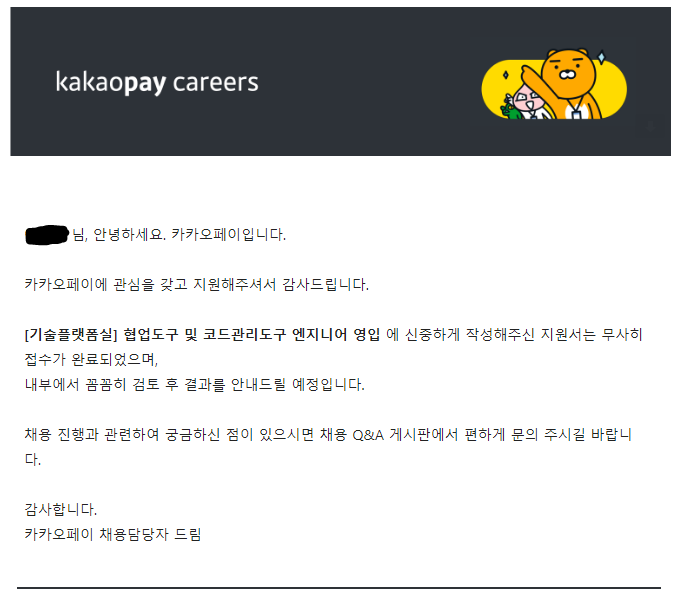 카카오페이 채용페이지에선 제출한 서류에 대해서 열람이 불가능하다..