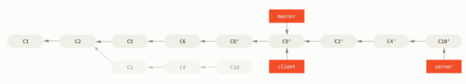 rebase 명령어 사용 후 형상 보는 것같이 server에 있던 commit 3,4,10 내용이 최신 master의 c9' 뒤로 붙는 것을 확인 할 수 있다.