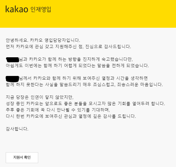 결과는 생각보다 빠르게 발표되었고, 나의 카카오로의 도전 후기는 여기서 멈추게 되었다.